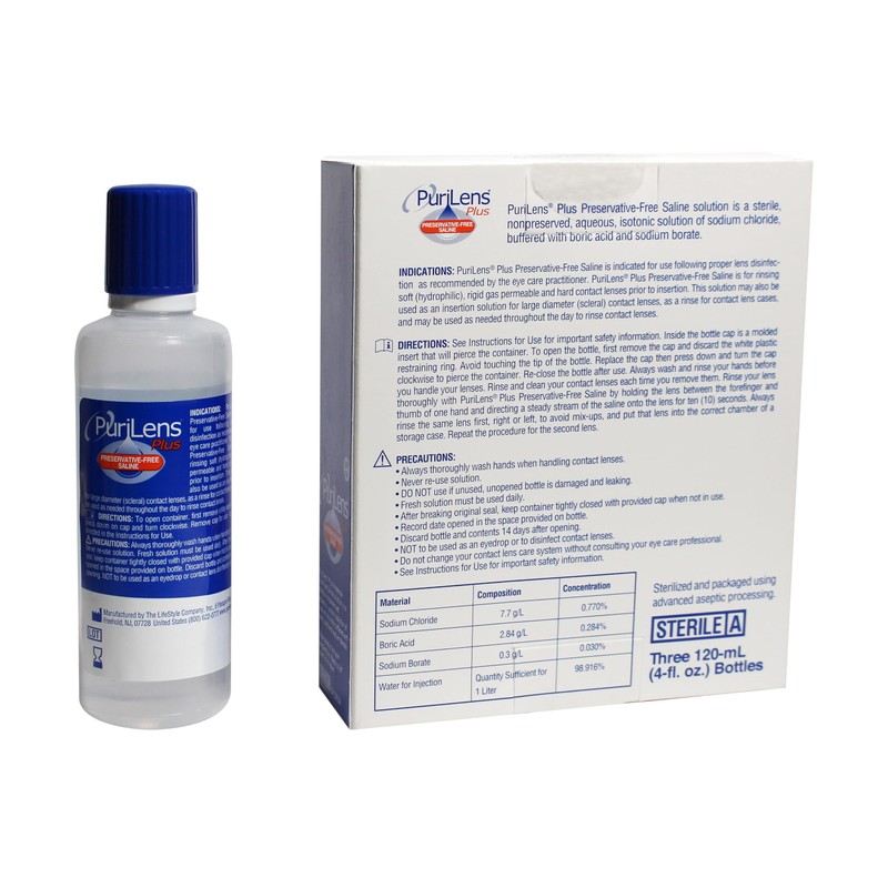 Purilens Plus Preservative-Free Contact Lens Saline 120ml (4 fl. oz.) 3 Pack