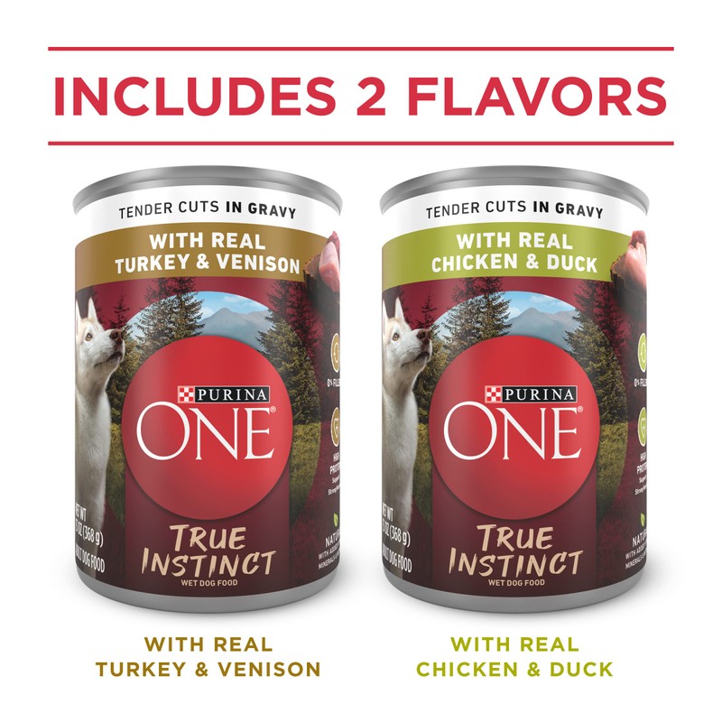 Purina ONE Purina ONE True Instinct Tender Cuts in Gravy With Real Turkey and Venison, and With Real Chicken and Duck High Protein Wet Dog Food Variety Pack - (Pack of 12) 13 oz. Cans
