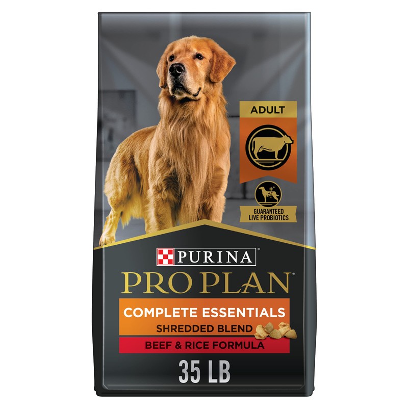 - One (1) 35 lb. Bag - Purina Pro Plan High Protein Dog Food With Probiotics for Dogs, Shredded Blend Beef & Rice Formula