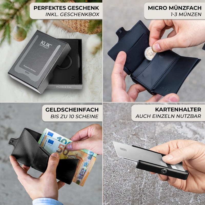 PURISTO KLIK Minimal Parent, black, AirTag micro coin compartment - 12 cards
