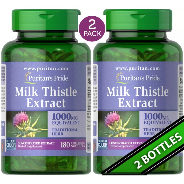 Puritan's Pride 2 Pack Milk Thistle 4:1 Extract 1000 mg Silymarin 360 Softgels (2x180) Exp 2026