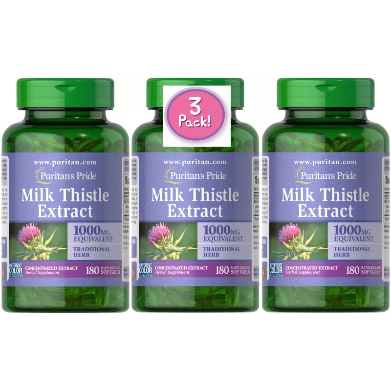 Puritan's Pride 3 Pack Milk Thistle 4:1 Extract 1000 mg Silymarin 540 Softgels (3x180) Exp 2026
