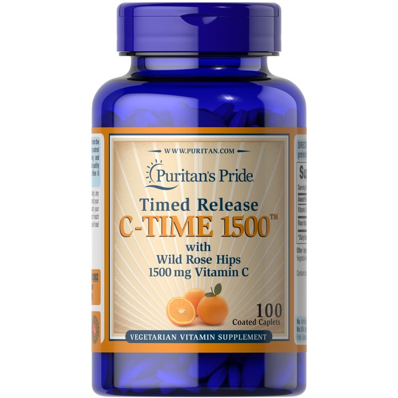 Puritan's Pride Vitamin C 1500 mg with Rose HIPS Caplets, 100 Count