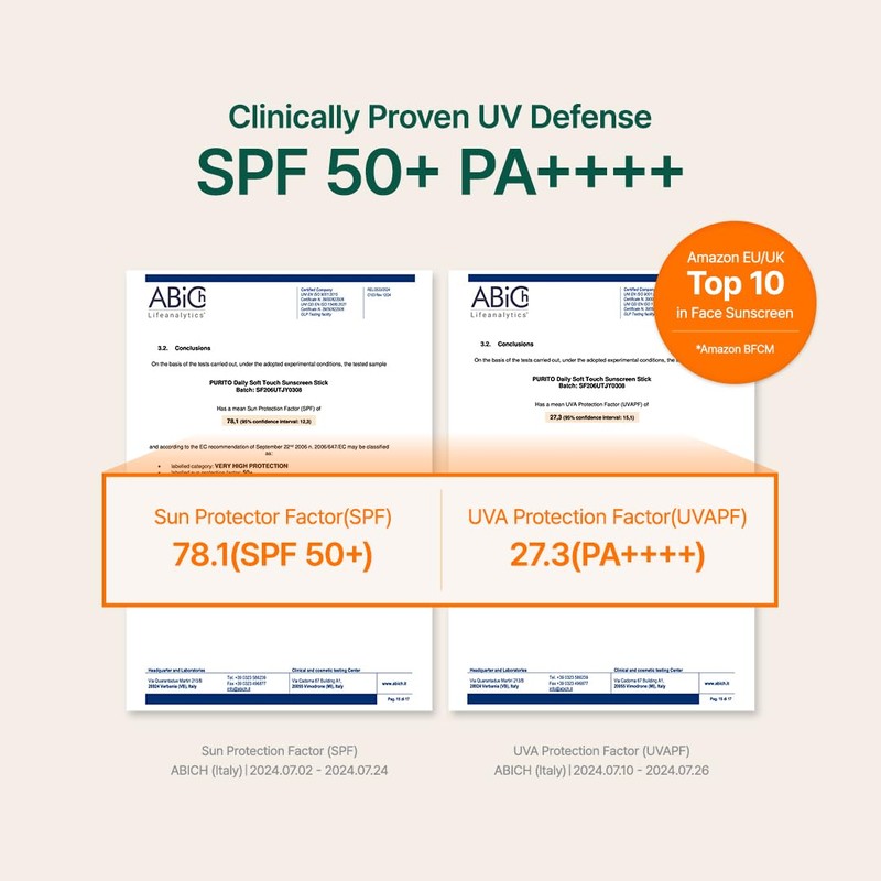 PURITO Seoul Daily Soft Touch Sunscreen Stick SPF50+ PA++++ Sunscreen 5-in-1 UVA & UVB Portable Korean Skin Care Hypoallergenic 20g