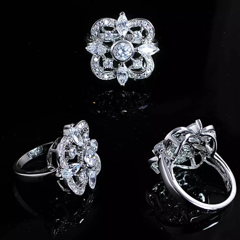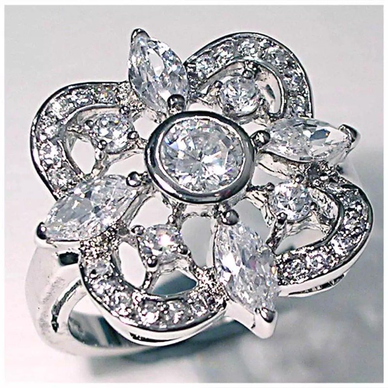 Dainty Lace CZ Cocktail Ring. . . set with Brilliant round and Marquise Brilliant CZ's in an open cut-out Dainty lace design- Looks like an estate piece set in detailed elegance. A Precious Precious ring. This ring was Showcased in Bazaar Magazine The quality is so good that it is impossible to distinguish between this and real ones costing hundreds and thousands of dollars *** DAINTY LACE ***