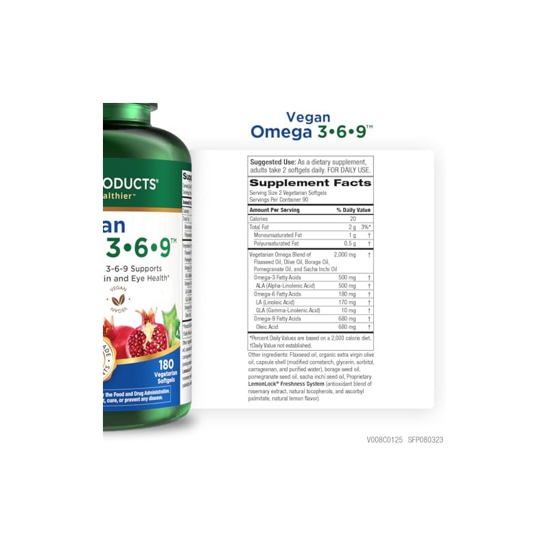 🌟 ⭐ Purity Products - Omega 3-6-9 Vegano - Ácidos Grasos Esenciales, 180 Cápsulas ⭐ 🌟
