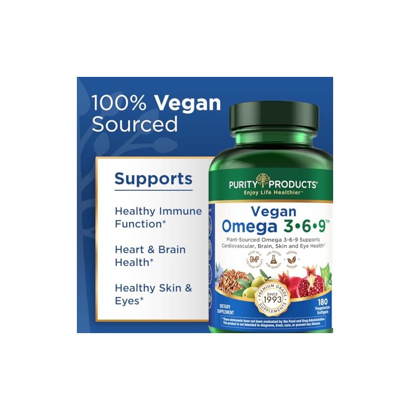 Purity Products - Omega 3-6-9 Vegano - cidos Grasos Esenciales, 180 Cpsulas - Producto Original de Alta Calidad, Entrega Rápida y Segura, Garantía Inc