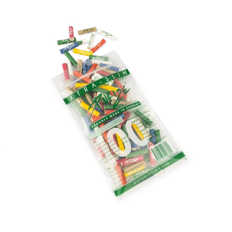 - Box contents: 100 colourful mixed PURIZE Xtra slim size activated carbon filters diameter 5.9 mm x 26.9 mm – pleasant airflow, no clogging and completely neutral in taste – see for yourself!