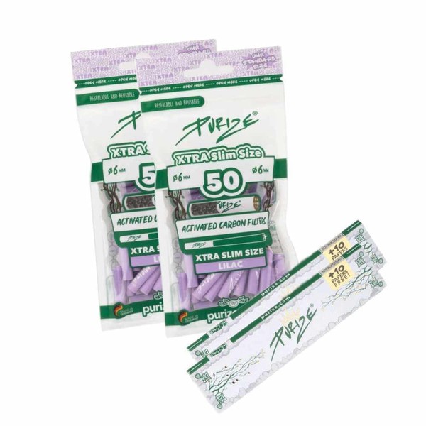 PURIZE Xtra Slim Size 6 mm Activated Carbon Filter 2 PURIZE Papers Lilac Pack of 100