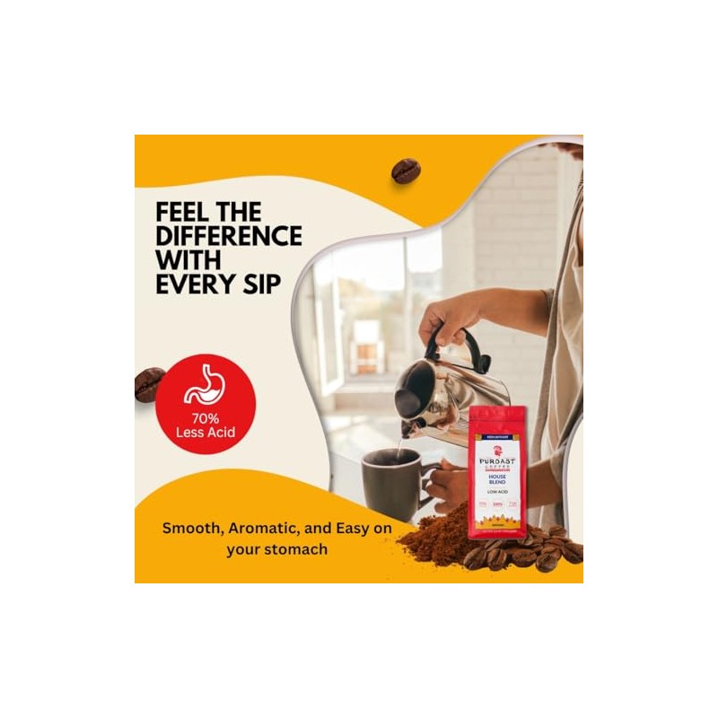 Puroast Low Acid Coffee Ground | House Blend Ground | Medium Roast | High Ant...