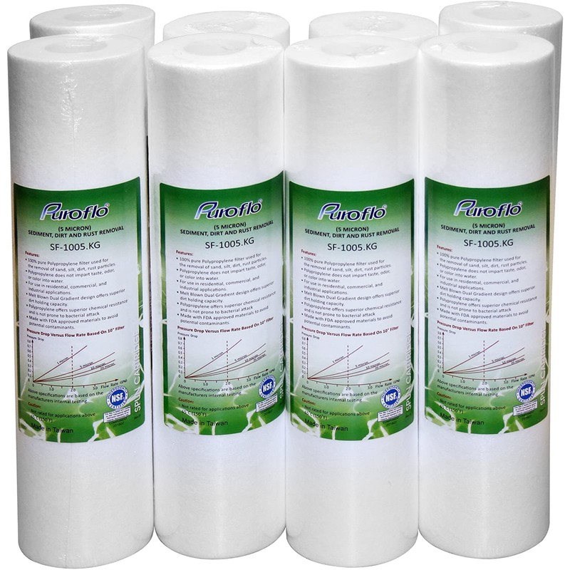 Puroflo 2.5" x 10" 5 Micron Sediment Water Filter Cartridge Pack of 8