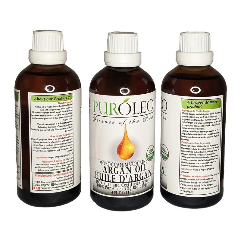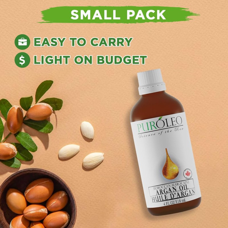 PUROLEO Argan Oil 4 Fl Oz/120 ML (Packed In Canada) 100% Pure argan oil for hair, Face & Skin Carrier Oil, Imported from Morocco, argon oil, maroko oil
