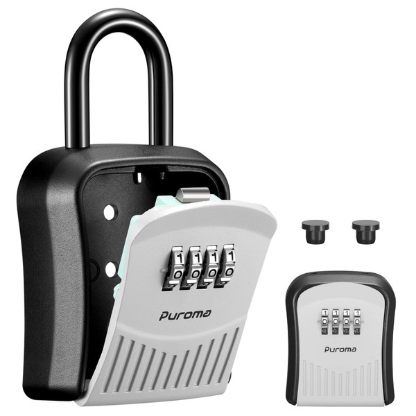 Puroma Lock Box Combination Key Lock Box, Wall-Mounted Portable Storage Lockbox for Keys with Resettable Code, Outside Safe Security Box for House, Apartment, Office Key Storage (1 Pack, Gray)