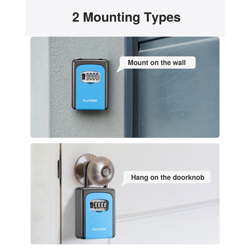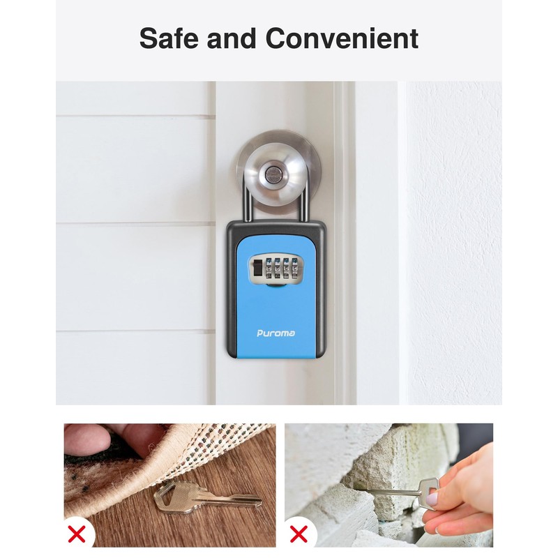 Puroma 4-digit combination key lock box makes your home accessible to your trusted friends; perfect for home owners, family members, vacation rentals, property management etc. With Puroma key storage lock box, you don't need to hide your keys under the carpet, flowerpot or doormat, it is really convenient for daily outdoor sports, home services etc.