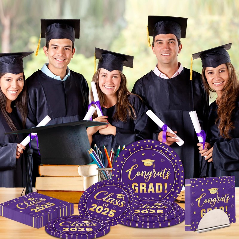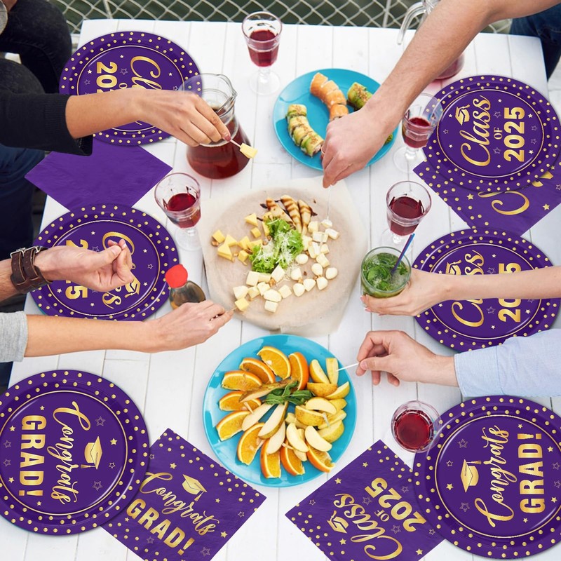- 【Occasions】Graduation plates and napkins sets are perfect for 2025 graduates of primary school, high school, college, master, PhD and other graduation ceremonies. Impress your guests and have an amazing and unforgettable time!