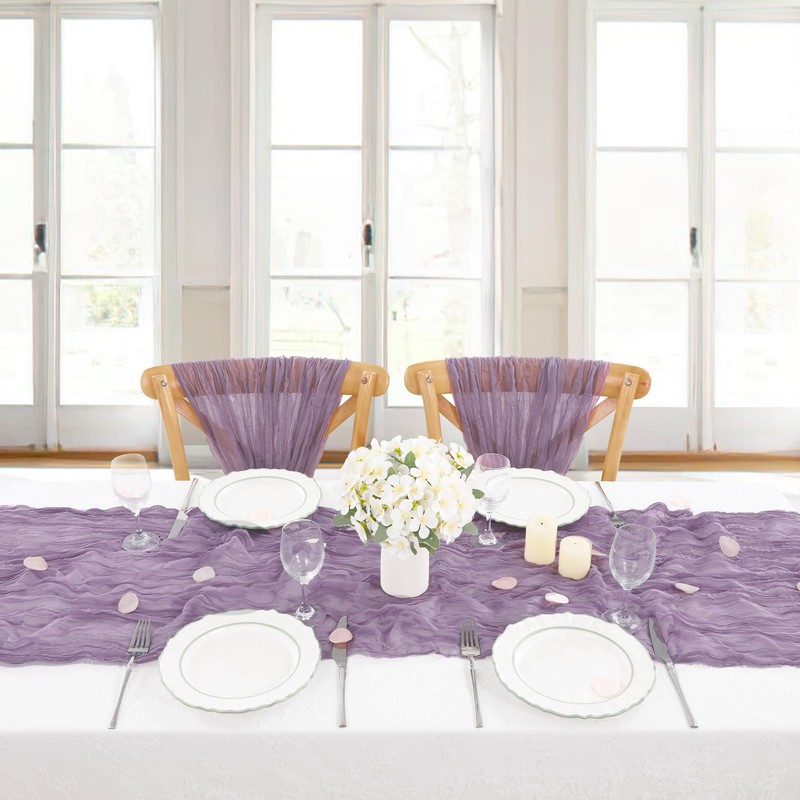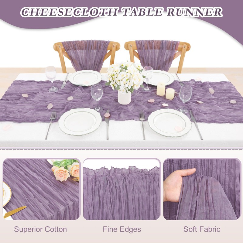 Purple Cheesecloth Table Runner 10 Packs 36x120 Inches Boho Gauze Table Runner for Wedding Bridal Shower Birthday Party Table Decor
