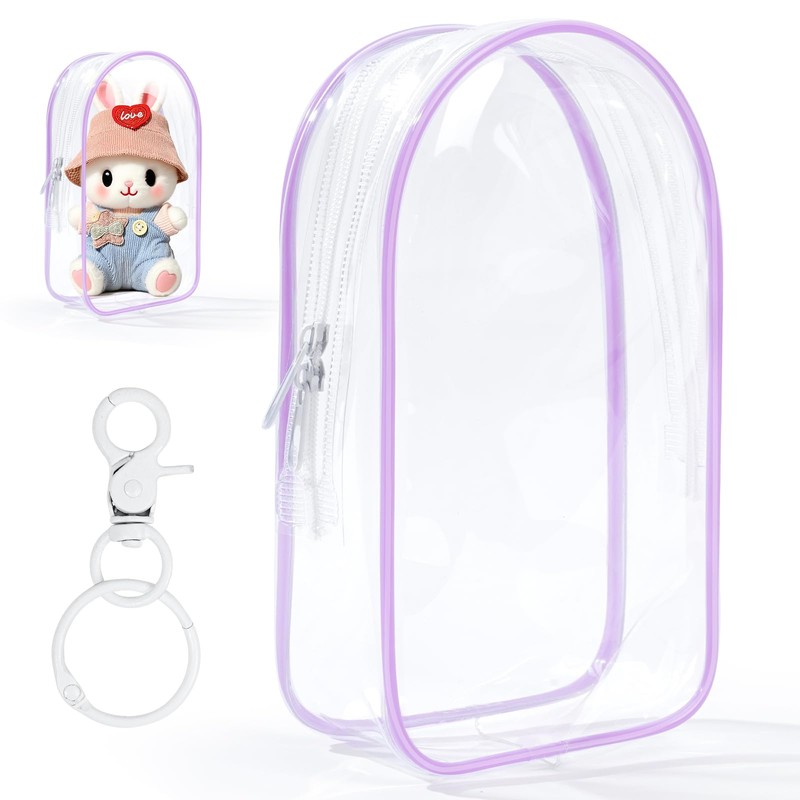 Purple Clear Figure Display Bag with Keychain for Doll, Positive Doll Storage Bag, Pouch Keychain Charms for Collectibles (with Zipper- Waterproof) Building Block Storage Bag,7.4 * 4.2 inch