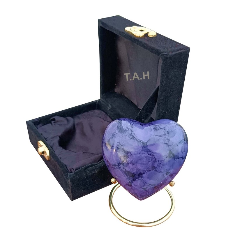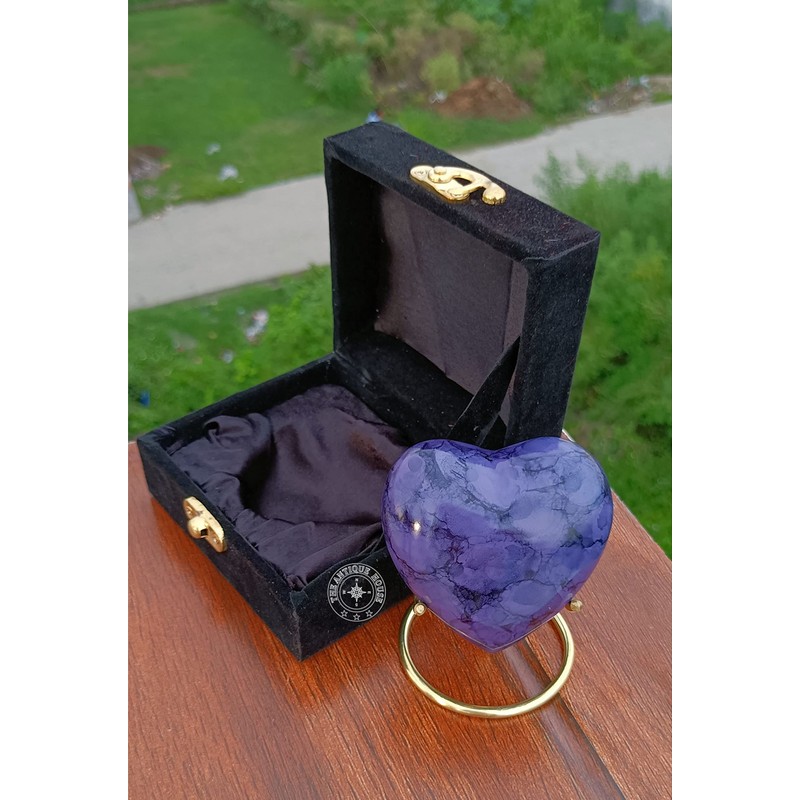 Purple Cremation Urn for Ashes Keepsake Heart Urn with Black Box and Brass Stand Mini urn for Your Loved one Adult & Funeral Burial for Adults and Infants