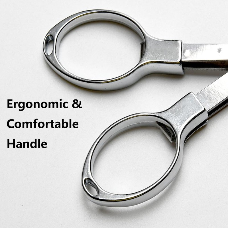 - [Ergonomic Design] The compact stainless steel scissors feature a comfortable split handle that effortlessly adapts to your fingers and provides a secure grip that prevents slipping. In addition, the handle is equipped with a hole at the end so that a lanyard (lanyard not included) can be easily attached to prevent loss