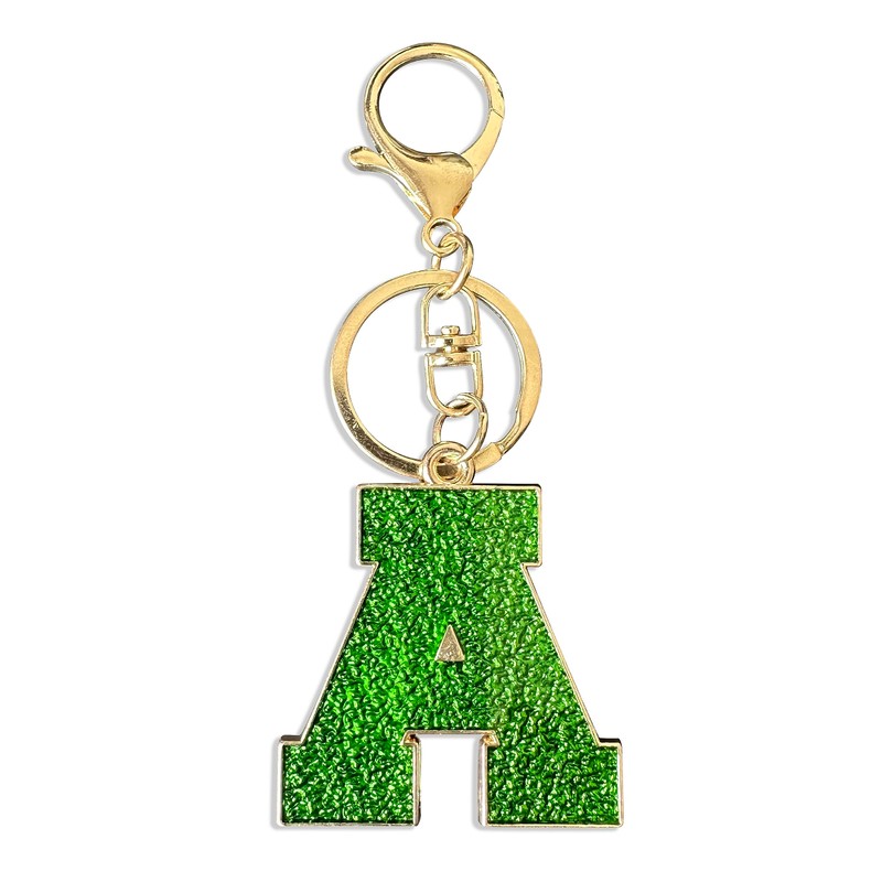 Purple Green Dark Blue Letter A-Z Keychain for Women Men Purse Handbags Metal Alphabet Initial Letter Car Key Ring (Green A)