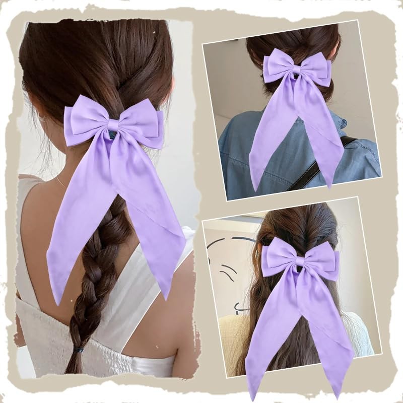Purple Hair Bows for Women Long Tail Large Oversized Satin Bowknot Barrettes Hairpins Ponytail Holders Princess Mermaid Costumes Hair Accessories Festival Coquette Wedding Bows
