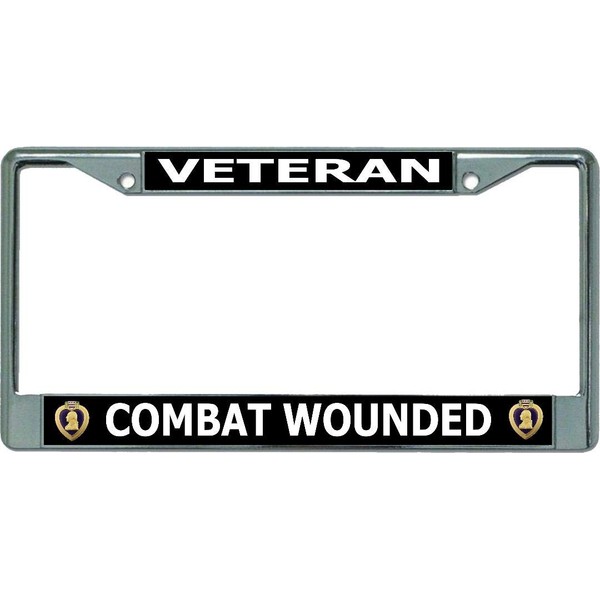Purple Heart Combat Wounded Veteran Chrome License Plate Frame