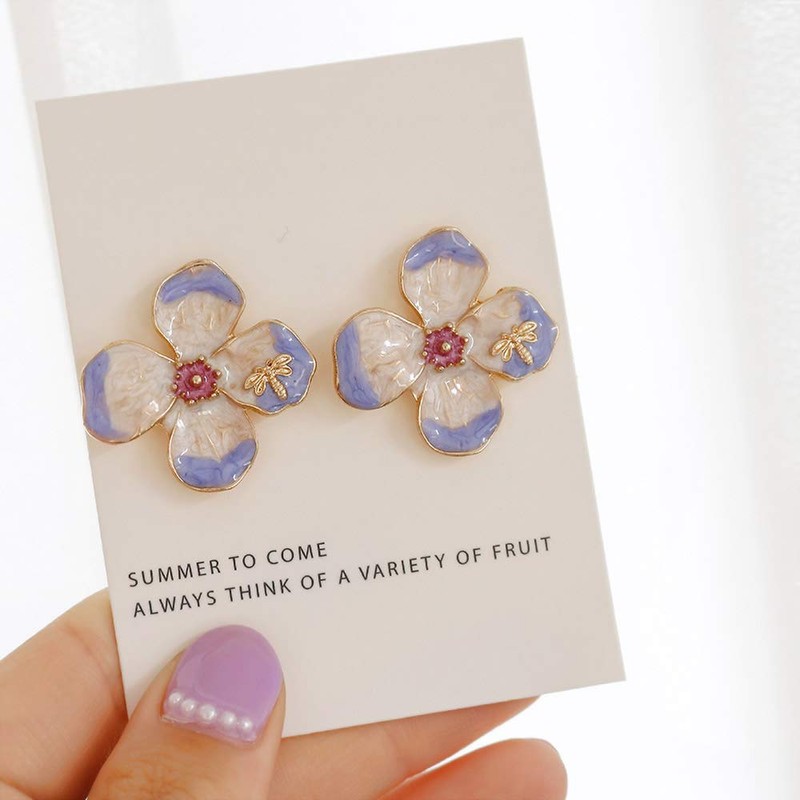 Purple Large Flower Clip-on Stud Earrings for Fairy Womens Girls Non Pierced, Metal, Cubic Zirconia