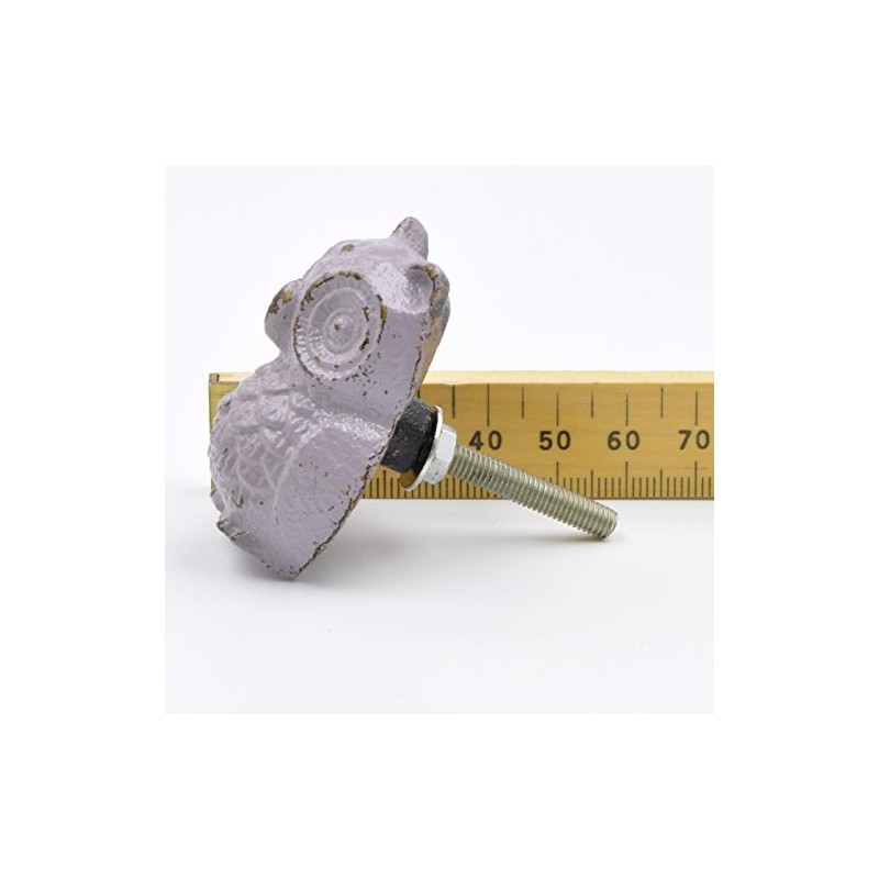 Purple/Lavender Metal Owl Bird Knob, Pull, Handle, for Cupboards, Doors, Cabinets, Drawers, Furniture, Kitchens (Plus Fitting Hardware) 3.7 cm Diameter 3.4 cm Rod Length