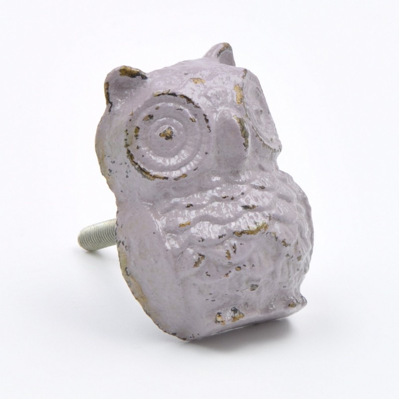 Alloy Owl Cupboard Knob - Lavender, Metal Purple Bird Cabinet Knob