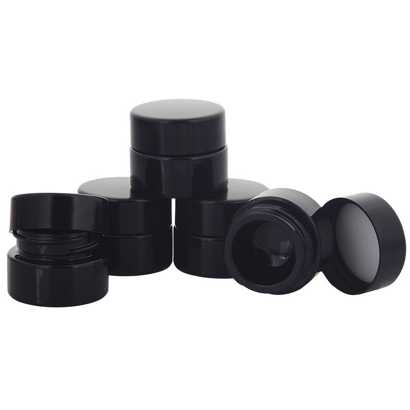 Purple Miron Glass Jar with Lid, 5 ml Kosmetex Cosmetic Jar, Ointment Jar, Miron Cream Tin, 5 x Black