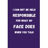 Purple Notebook: I Can Not be Held Responsible for what my Face Does when you Talk: Lined Journal with Funny Sayings on Cover | Gag for women, Men, ... | Humor Sarcastic Work Office Boss and Team