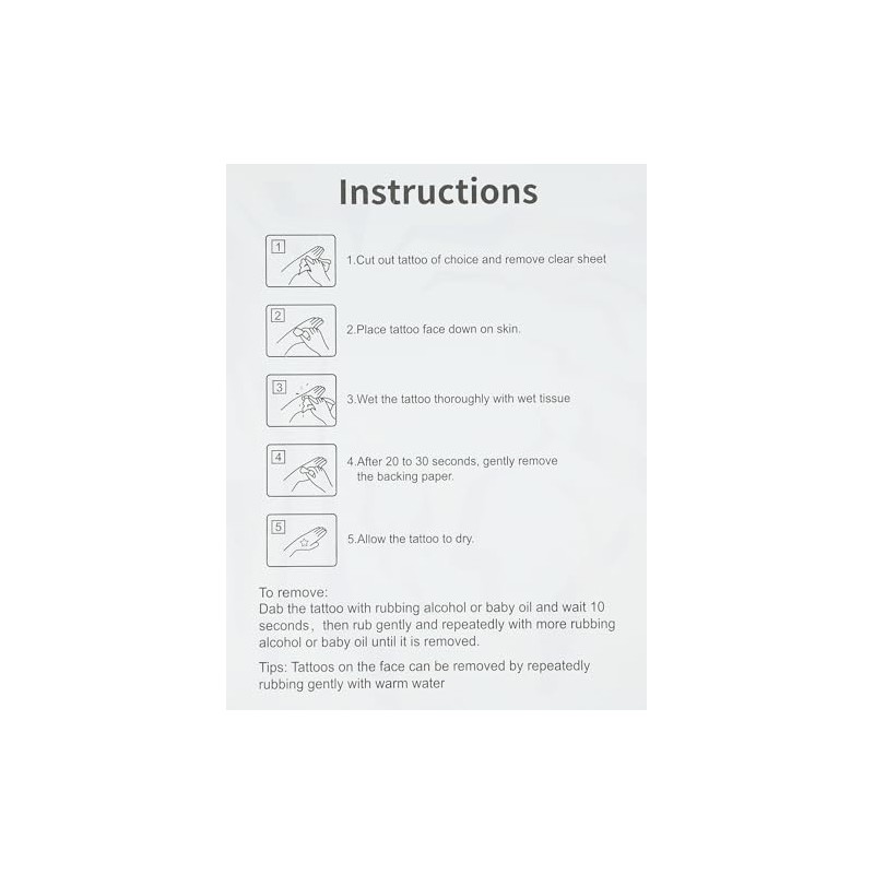 - High-Quality & Waterproof: Made with safe materials, the tattoo stays vibrant and smudge-proof for up to 3–5 days, even with sweat, dancing, or outdoor activity.