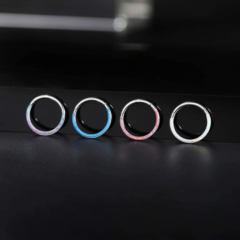 - Opal Septum Jewelry Design: the front of the septum hoop is inlaid with opal to make it more fashion and charming on your ear or nose; Package include 1pc opal septum ring and come with a black velvet bag; it's suitable wear on festival, holiday and vacation