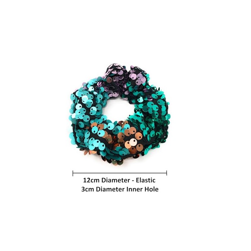 - Liven up your hair style with a wide range of dazzling colours created by the dynamic, reflective effects of the sequins. These scrunchies seamlessly switch between shades with a simple elastic band for individual styling. They add a cheerful, glittery accent to any outfit, ideal for parties, celebrations and daily flair.