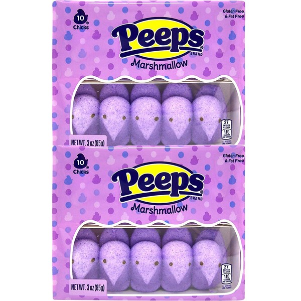 - PACK OF 2: 2 Packs of 10 delicious purple marshmallow chicks, 20 total.