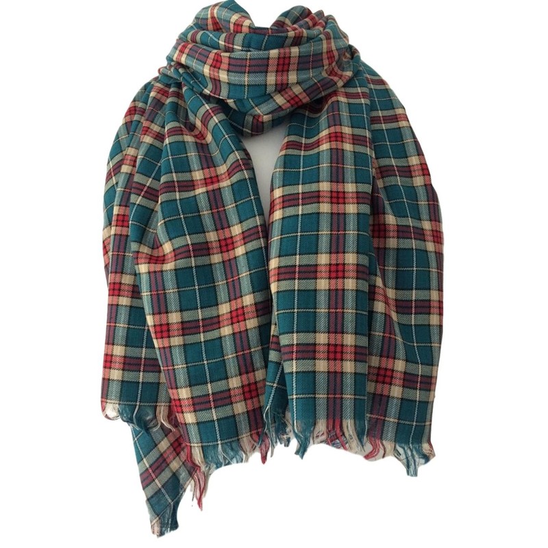 Purple Possum® Tartan Scarf Ladies Teal Blue Green Beige Red Plaid Shawl Mens Cotton Checked Fair Trade Scarf