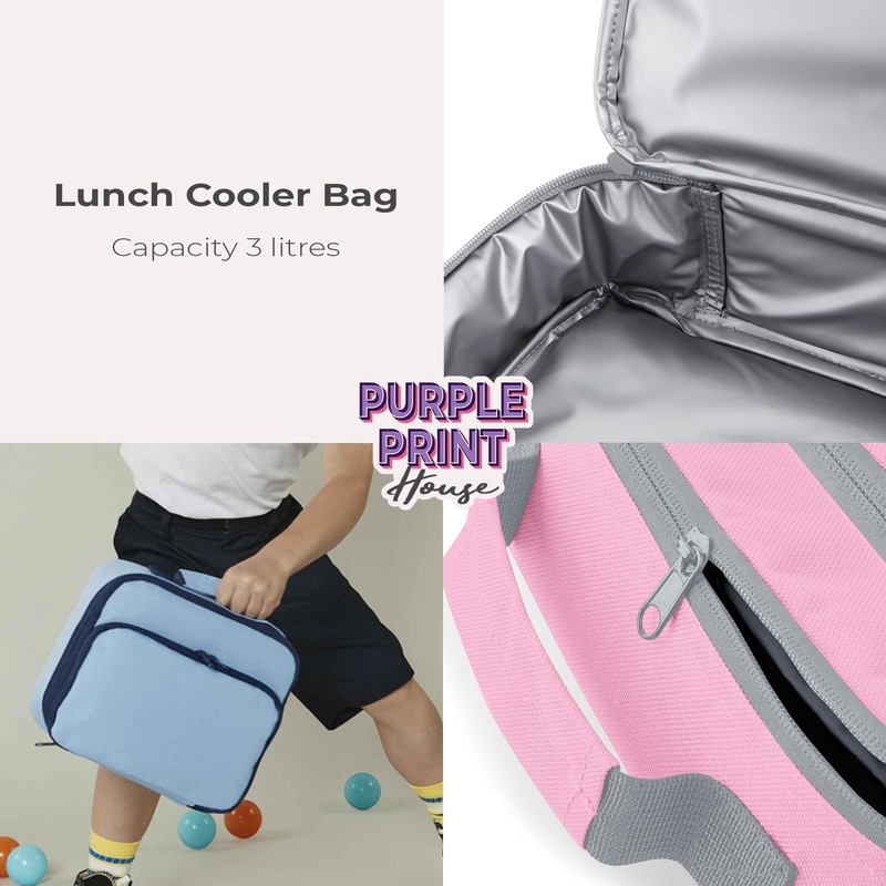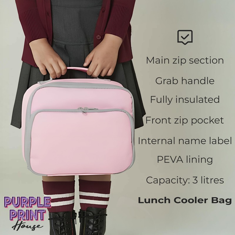• The lunch bag is made from sturdy easy-clean fabric with a main insulated compartment keeping food fresh. It includes a secure zip closure and handle for comfortable carrying all day. The personalisation is vivid and designed to last.