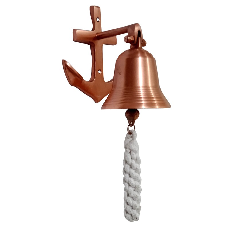 Purpledip Brass Nautical Bell Anchor Mount: Pirate Ship Marine Wall Hanging, Copper (11403B)