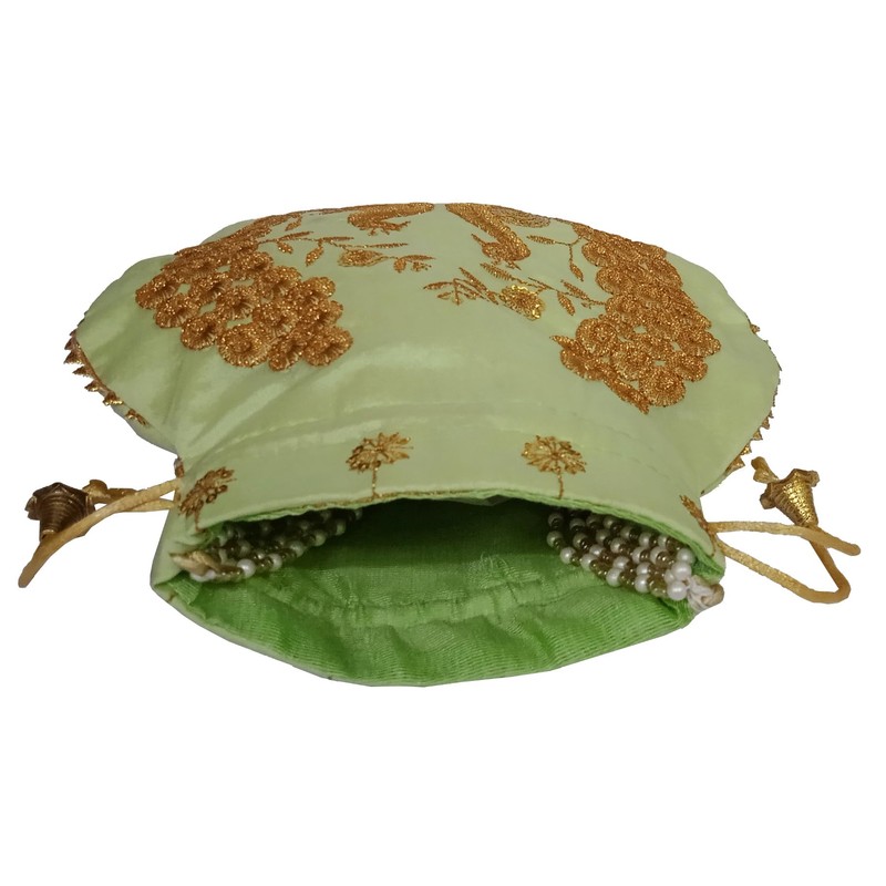 - Drawstring potli bag with intricate embroidery and zari work - pairs nicely with all western & Indian dresses