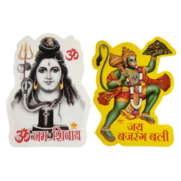 Purpledip Vinyl Stickers Set Hanuman & Shiva: for Home, Temple, Or Car Decoration (12721B)