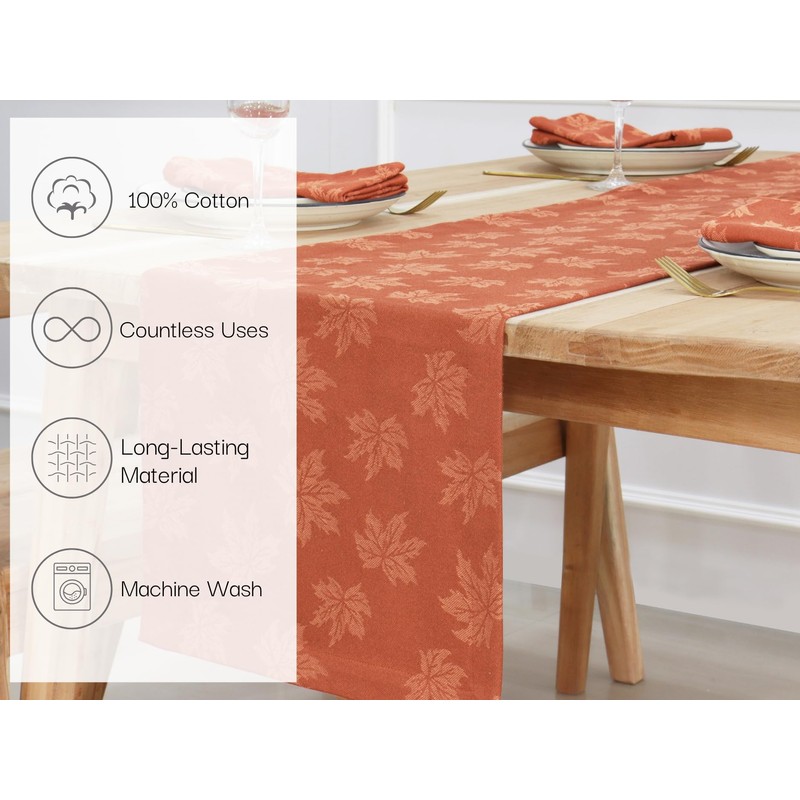 PurpleEssences Rust Jacquard Fall Table Runner Collection, 14x72-in Autumn Table Runner for Fall Harvest & Farmhouse Kitchen, Damask Cotton Thanksgiving Table Runners, Maple Leaves