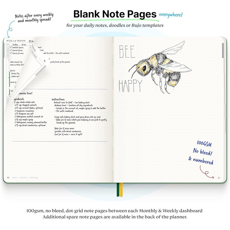- Planner + Notebook All in 1: Annual Calendar, Notes Index, Monthly & Weekly to do list planner dashboards, 93 numbered dotted note pages for expanded task lists, notes, or sketches. All-in-one business planner, notebook and life organizer.