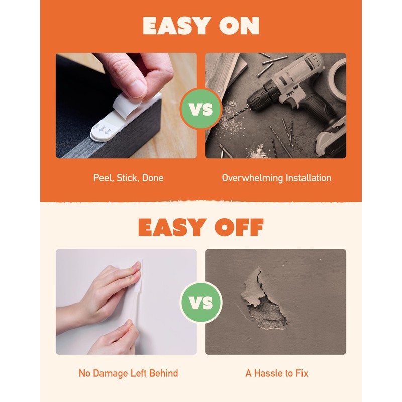 - Renter Friendly & Hassle Free – Set up in minutes with no power tools required and no wall damage left behind. Our strong and removable hook-and-loop mounting strips provide a secure hold while making installation a breeze.