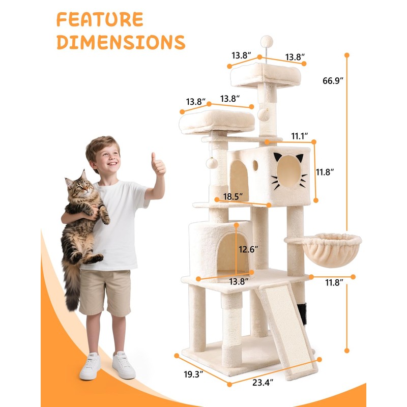 - CRAFTED FOR YOUR FURRY FRIEND'S COMFORT: Features multiple platforms, cozy hideaways, and elevated perches perfect for cats to climb, rest, and play at different heights. Spacious, plush condos, perches, and a cozy hammock offer the ultimate relaxation spot for napping and observing surroundings. Equipped with multiple cat toys to keep your pets entertained anytime. Ideal for multi-cat households, offering plenty of space for all your feline friends. Selected from eco-friendly materials that are both safe and durable, ensuring long-term use.