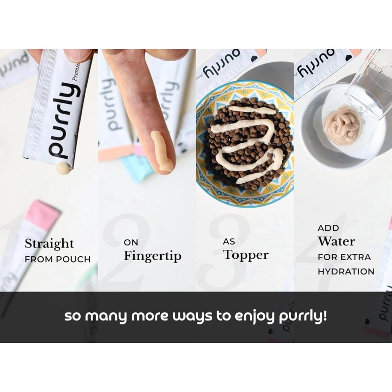 • INTERACTIVE & BONDING EXPERIENCE - Purrly's lickable puree encourages a unique and interactive way to treat and bond with your cat. You can offer the treat directly from pouch, your finger or a spoon, creating a moment of shared enjoyment and strengthening the connection between you and your feline friend. These treats can become an integral part of playtime, training sessions, or simply offering a small token of affection, fostering a deeper and more rewarding relationship with your cat.