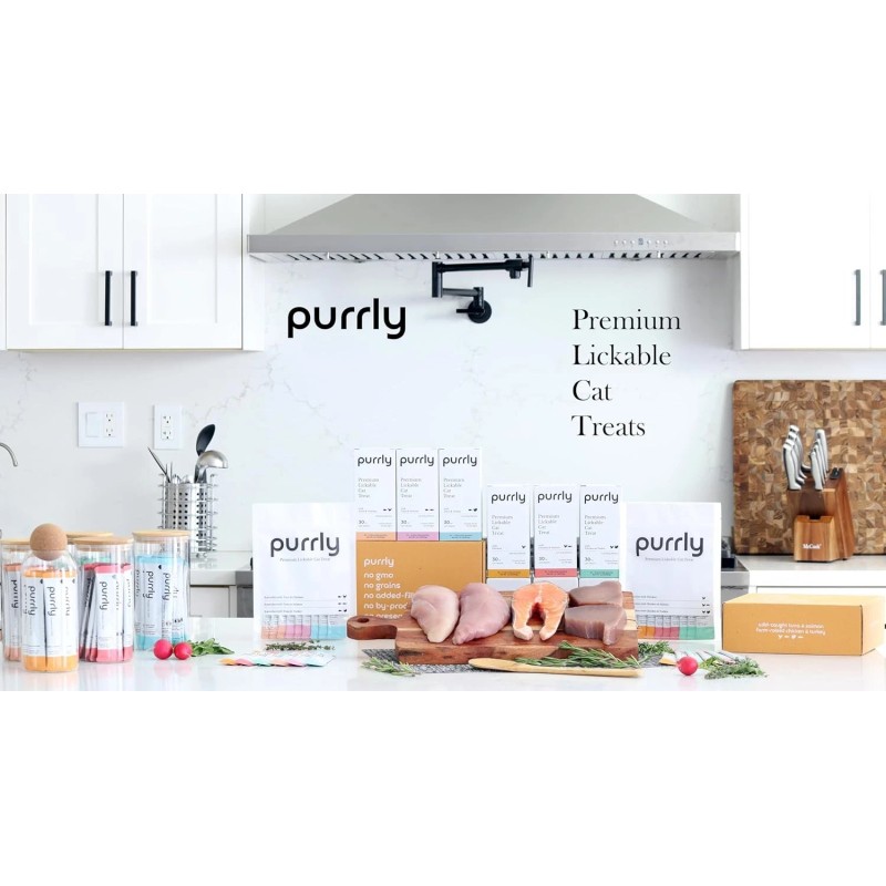 • HUMAN-GRADE PROTEIN SOURCES - Purrly uses only human-grade meat and fish as the primary protein source, exceeding industry standards and ensuring exceptional taste and unmatched nutritional value for your cat. These exquisite treats elevate snack time beyond ordinary treats, offering a truly gourmet experience that satisfies your feline's discerning palate. Each pouch serving unparalled quality and nutrition.