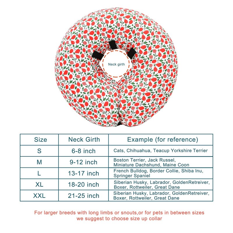 • DURABLE AND STABLE - The protective collar is soft, it will not mark furniture and you can insert your pet’s normal collar through the inner ring loops. The product does not include an inflator