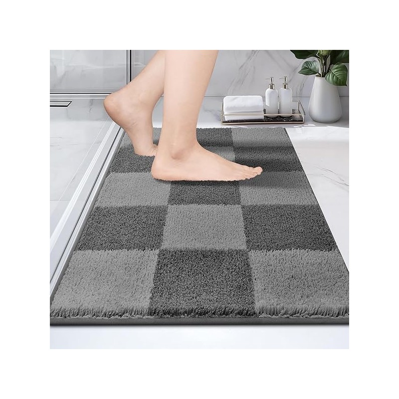 PURRUGS Machine Washable Matting Free Bathroom Rug 20" x 30", Non-Slip Dense Pile Bath Mat, Super Absorbent and Quick-Dry Bath Rug for Shower, Bathtub, and Sink, Grey & Dark Grey