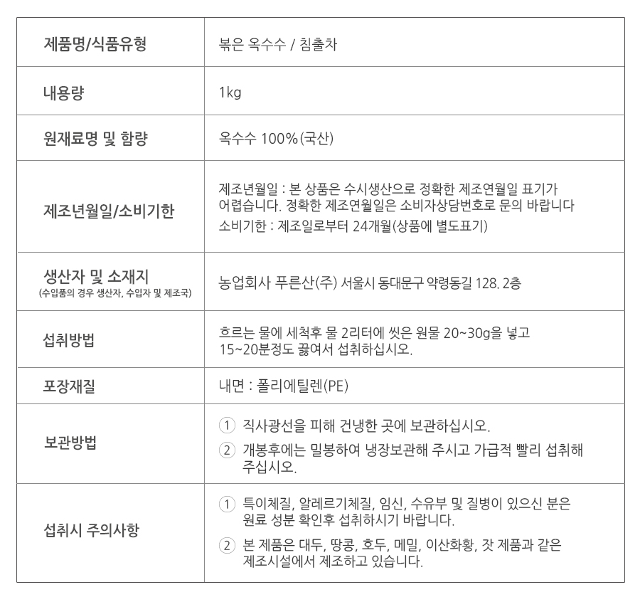 Purun Deulp'an 국내산 볶은 옥수수 차 1kg Domestic Roasted Corn Tea 1kg