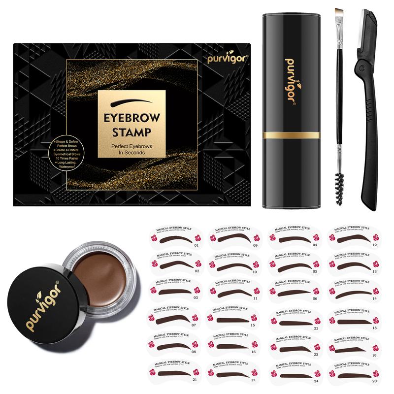 purvigor Eye Brow Stamping Kit, Brow Stamp Trio Kit, Perfect Bushy Eyebrows, Dark/Light/Medium Brown - Color: Dark Brown, Standard
